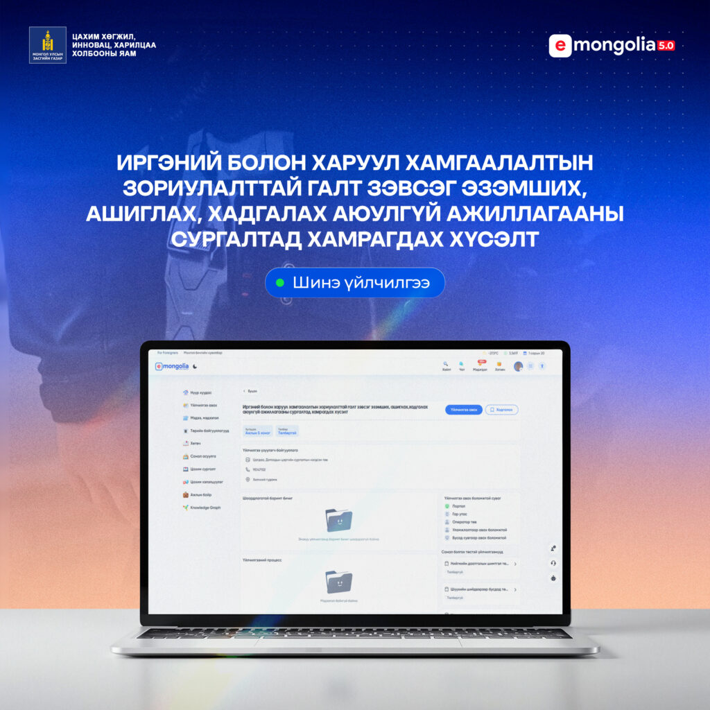 ИРГЭНИЙ БОЛОН ХАРУУЛ ХАМГААЛАЛТЫН ЗОРИУЛАЛТТАЙ ГАЛТ ЗЭВСЭГ ЭЗЭМШИХ, АШИГЛАХ,ХАДГАЛАХ АЮУЛГҮЙ АЖИЛЛАГААНЫ СУРГАЛТАД ХАМРАГДАХ ХҮСЭЛТЭЭ E-MONGOLIA-ААР ИЛГЭЭГЭЭРЭЙ