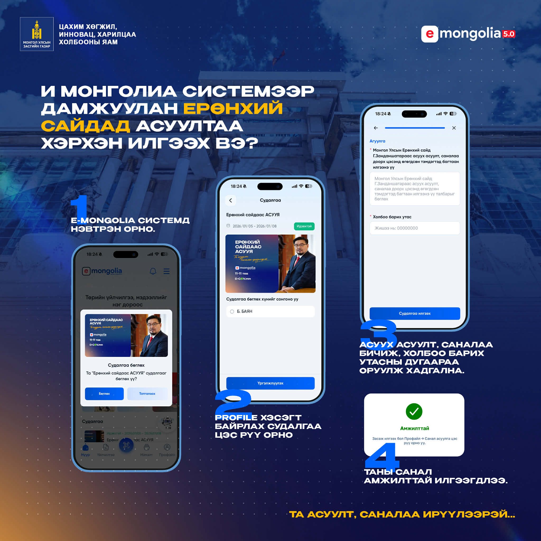 Энэхүү зорилгын хүрээнд E-Mongolia систем, D-gov.mn портал болон 1111 тусгай дугаараар дамжуулан иргэд Ерөнхий сайдаас асуулт асууж, саналаа илгээх шинэ боломж өнөөдрөөс эхлэн /2026.01.13/ нээгдэж байна.